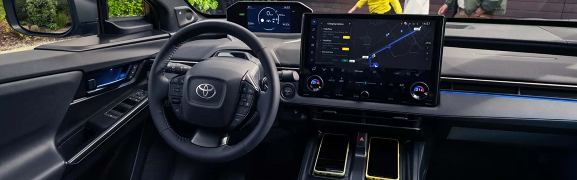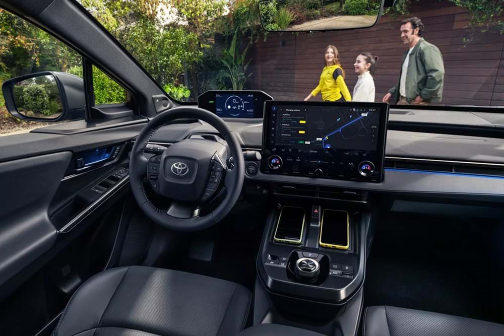 Den nye Toyota bZ4X løfter enhver køretur med behagelig ergonomi og intuitiv teknologi. Takket være den rummelig kabine kan alle slappe af.