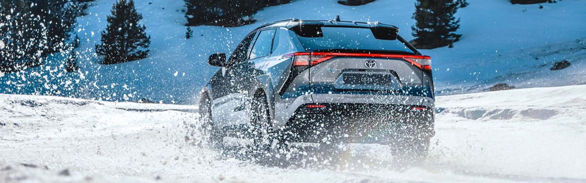 Den ustoppelige nye Toyota bZ4X fås med firehjulstræk for sikker og selvsikker kørsel på alle veje og i al slags vejr. Med høj effekt og moment fra en elbil giver firehjulstræk enestående vejgreb og kontrol under alle forhold.