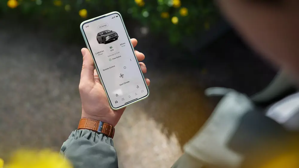 MyToyota-appen giver dig adgang til vigtig information når som helst, hvor som helst. Tjek bilens ladetilstand, resterende rækkevidde og opladningsstatus, når du vil. Du kan også låse og låse bilen op på afstand, planlægge opladning og forvarme kabinen før din tur. Den viste bil er Toyota bZ4X.